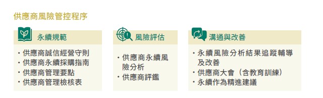 本公司注重集團業務成長的同時,亦嚴謹落實採購風險的管控與責任採購,透過推動永續供應鏈管理,邀請供應商加入永續行動,共創韌性永續未來。
